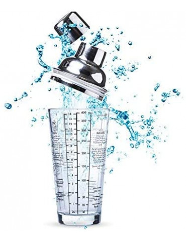 - La parte superior de esta coctelera es de acero inoxidable duradero, resistente a los arañazos y a la corrosión, con un cuerpo de vidrio grueso que es simple y fácil de limpiar. Cuenta con un empaque de sellado entre el mezclador y la tapa eliminando asi cualquier problema de fugas.