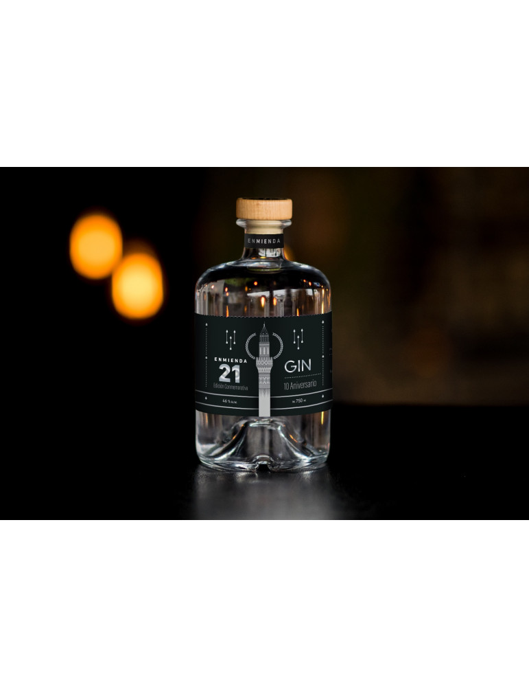 Gin Enmienda 21. Decimo Aniversario.Es un Gin mas robusto con tonos herbales y 46 grados de alcohol